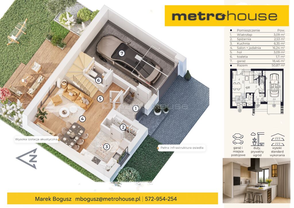 Ten nowoczesny, funkcjonalny dom o powierzchni 108 m² to idealne połączenie bliskości natury z wygodą codziennego życia zaledwie kilka minut od szkół, sklepów i wszystkich miejskich udogodnień.
