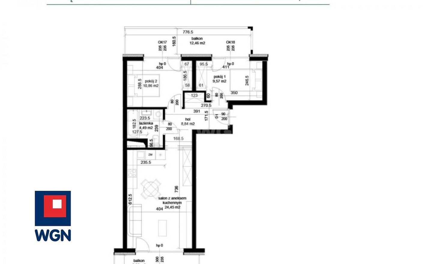 - powierzchnia balkonu 12,46 m2 + 8,06 m2