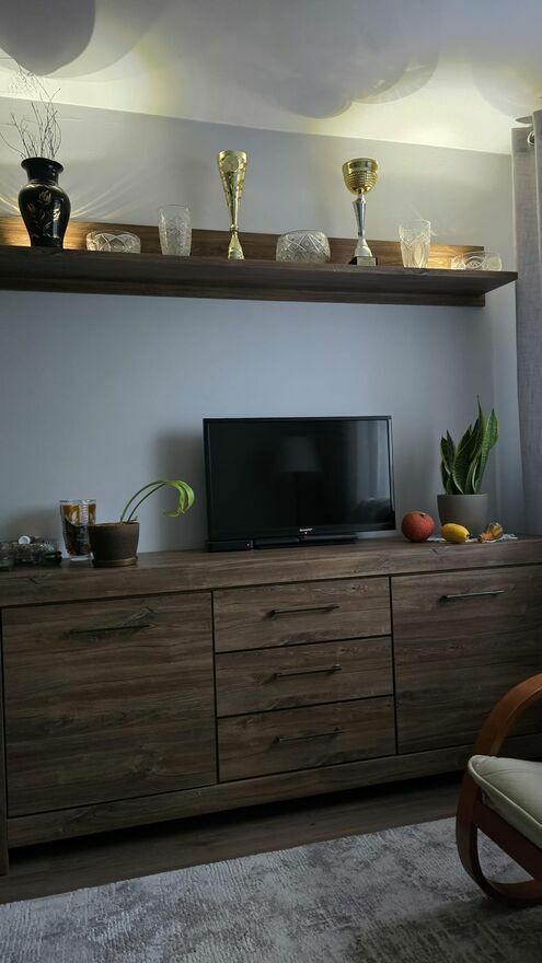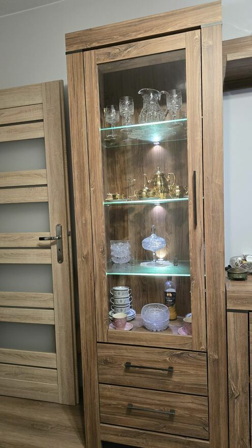 Meble do salonu, sypialni... Wyglądają jak nowe! Szafa bardzo pojemna, wymiary: wys: 2 m, szerokość: 98 cm, głębokość: 56 cm. Komoda, szerokość: 2 metry, wysokość: 85 cm. Słupek, wysokość: 2 metry, szerokość: 68 cm, głębokość: 42 cm. Wisząca półka również ma 2 metry długości. Drzewo zmienia kolory w zależności od oświetlenia. Bardzo ciekawy zestaw. Praktycznie nie używany. Polecam z całego serca. OkazjaSprawdź zainteresowanie tym ogłoszeniem